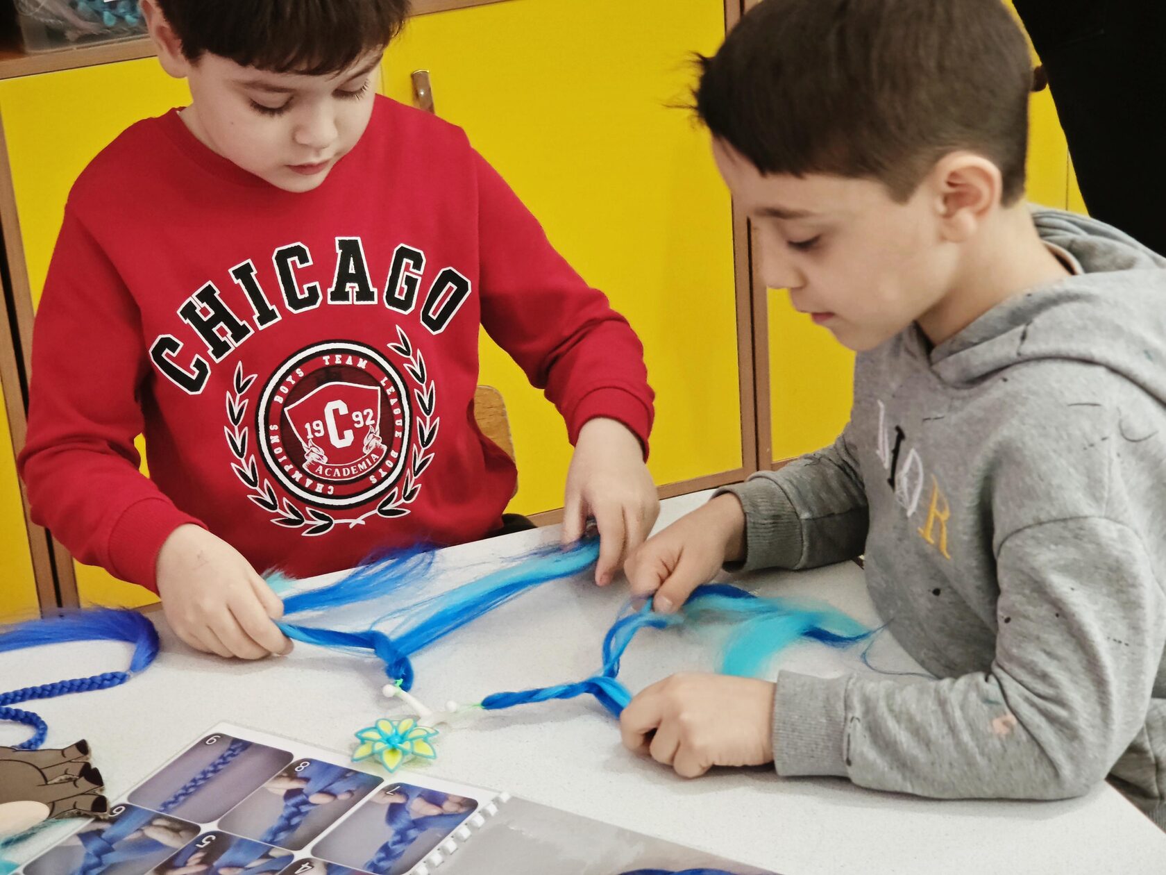 Мы с ребятами решили познакомиться с самым древним на свете ремеслом- плетением, но не из обычных привычных нам материалов, а из канекалона.